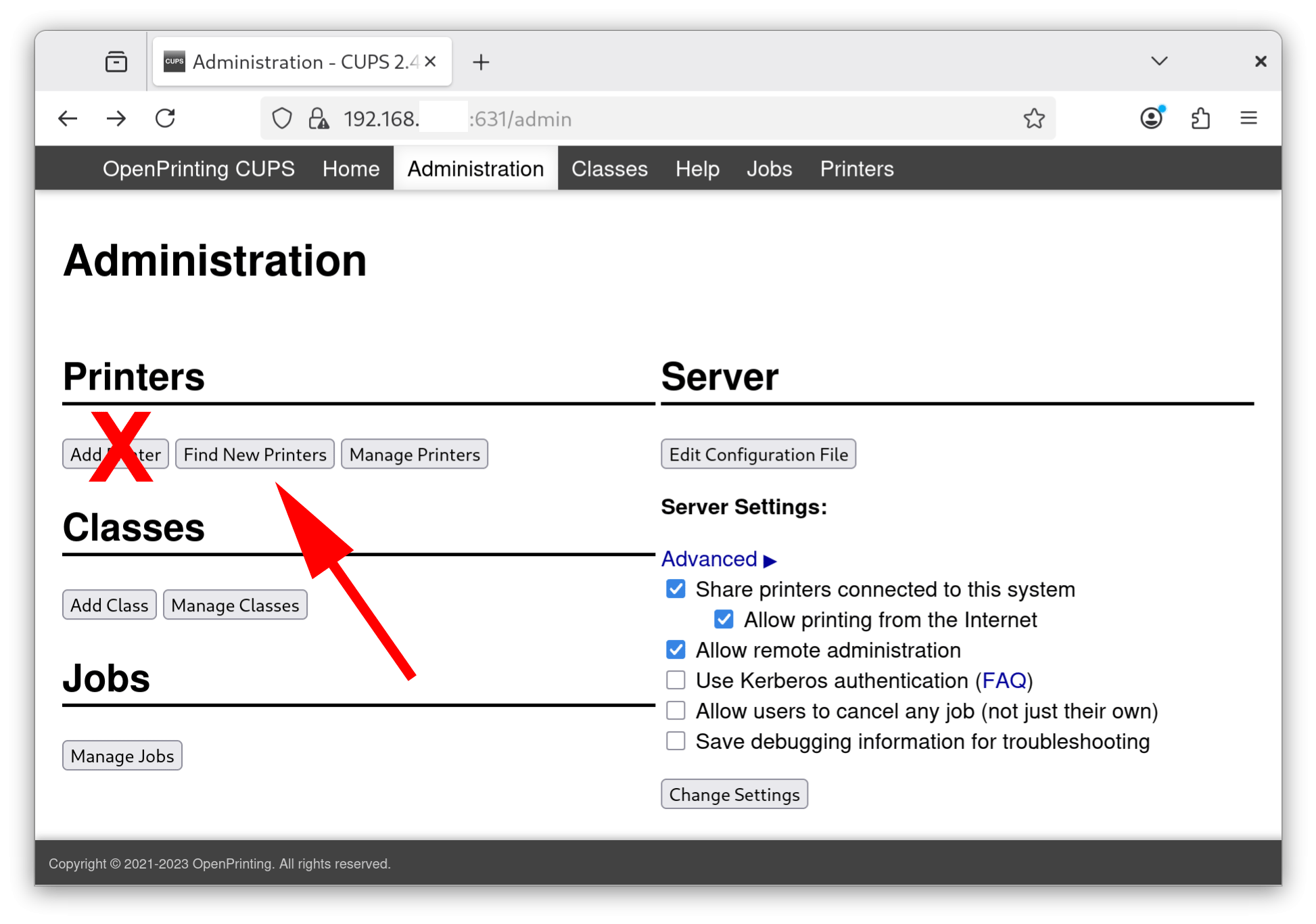In addition, to being a print server, cups has a built-in Webserver. The rest of the installation will be done using cups' built-in webserver.