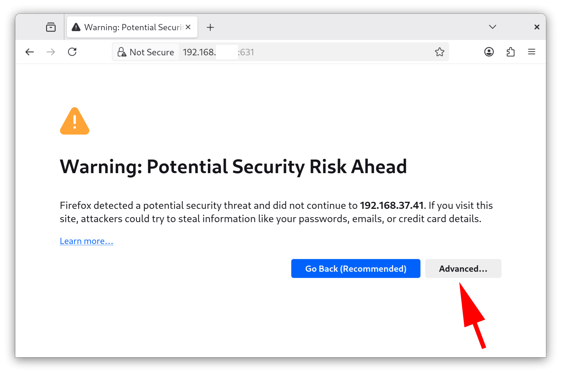 Ignore the "Warning: Potential Security Risk Ahead".